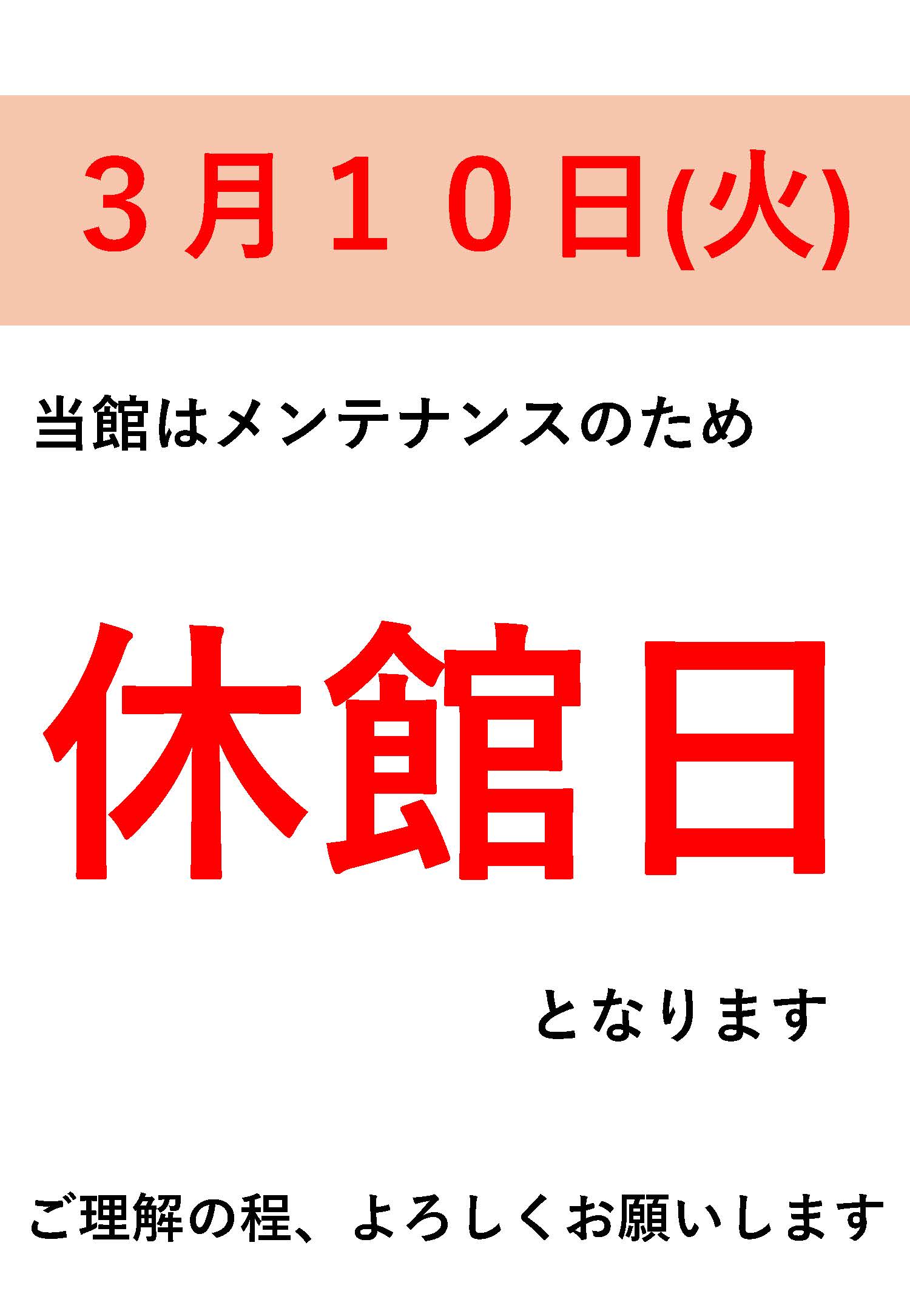 【2026年3月10日(火)】臨時休館のお知らせ
